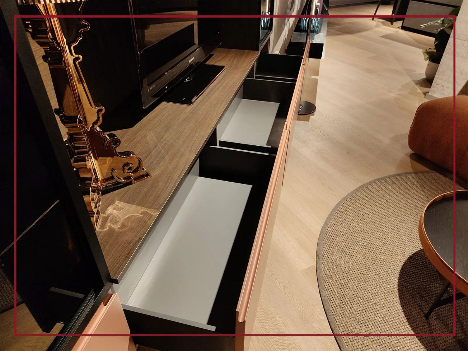 Caratterizzata da un design essenziale ma ricercato con vano centrale pensato per il Tv, si distingue per l’uso sapiente dei materiali e per la cura dei dettagli.