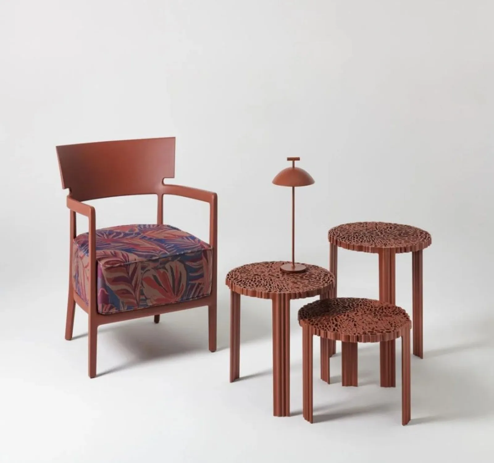 Scopri la poltrona Cara Mat Outdoor di Kartell: design unico, comfort ideale per esterni. Rendi il tuo spazio esterno elegante e accogliente.