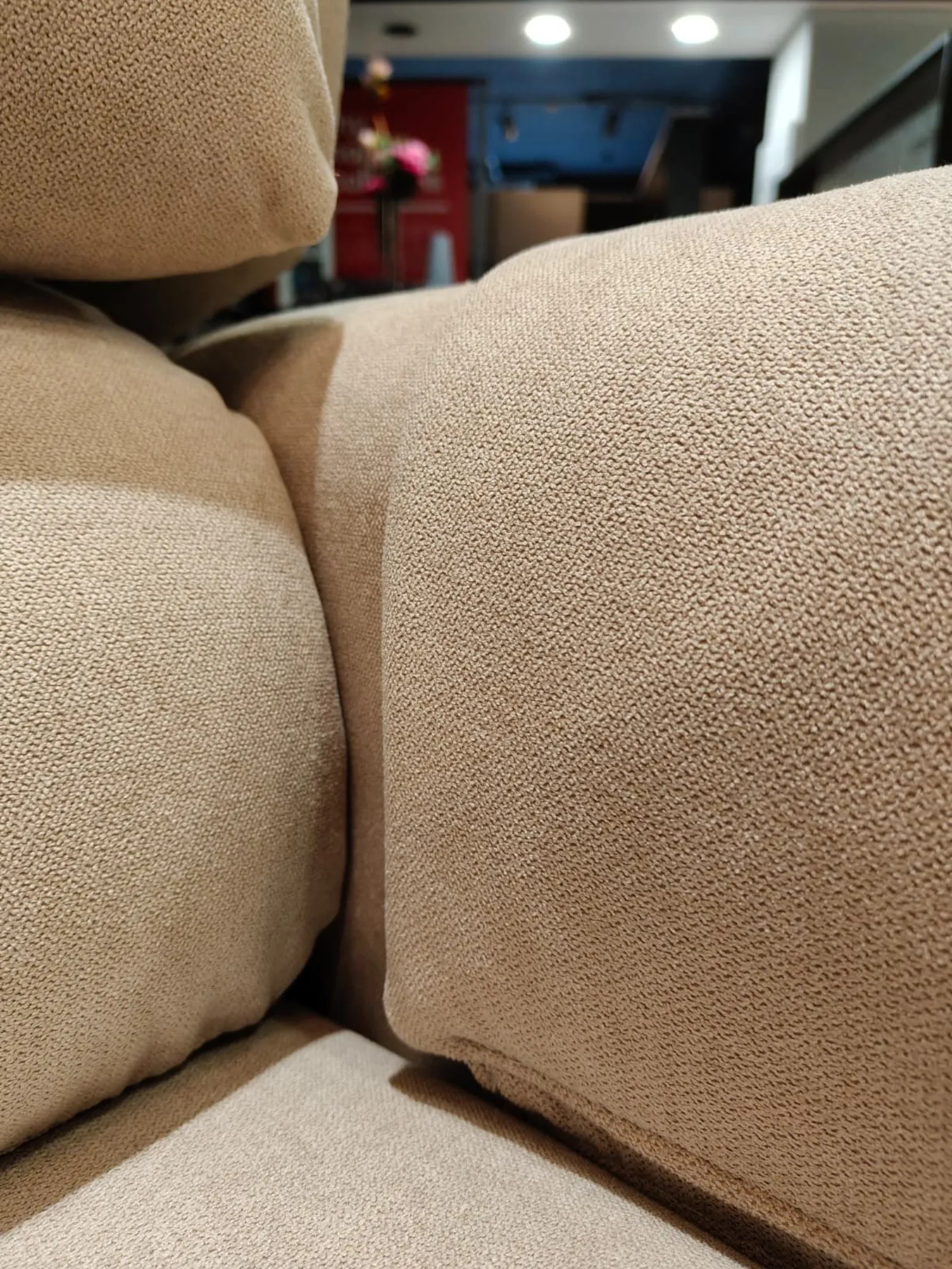 La seduta ampia e accogliente si combina con uno schienale soffice e ben sagomato, capace di sostenere la schiena in modo naturale e di accompagnare ogni momento di riposo.