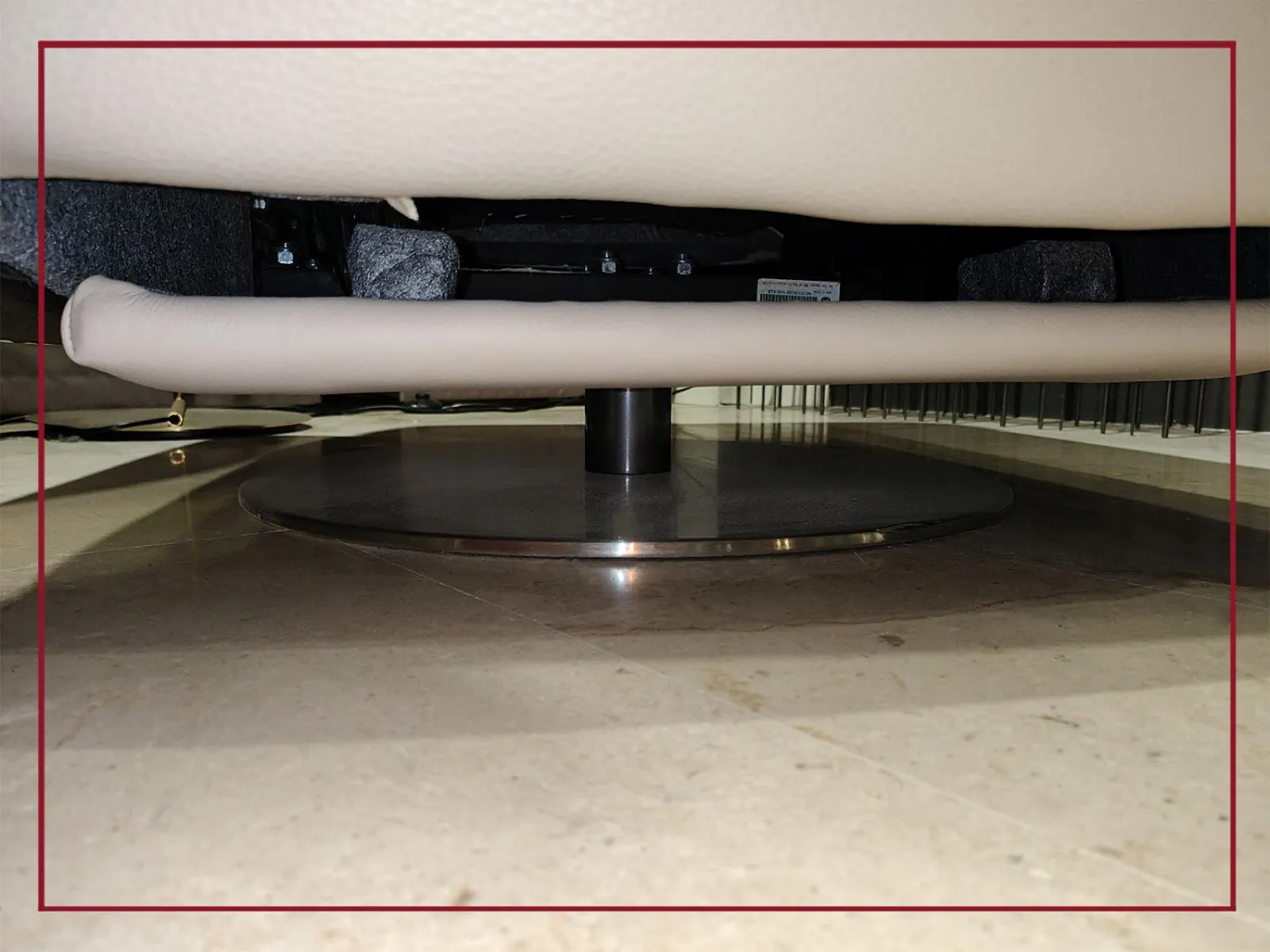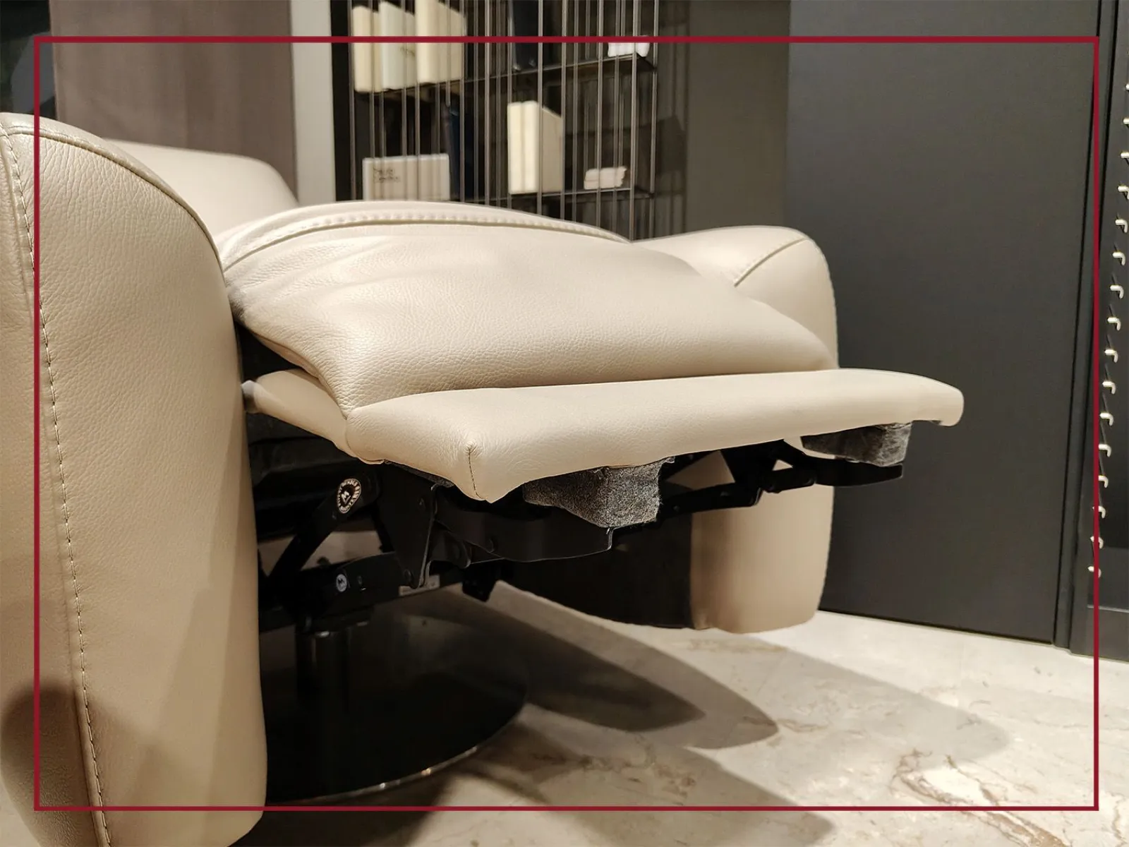 Il meccanismo relax manuale, discreto ma potente, consente di regolare schienale e poggiapiedi in modo fluido, accompagnando il corpo in una posizione ergonomica e distensiva, inoltre è dotata di una base girevole