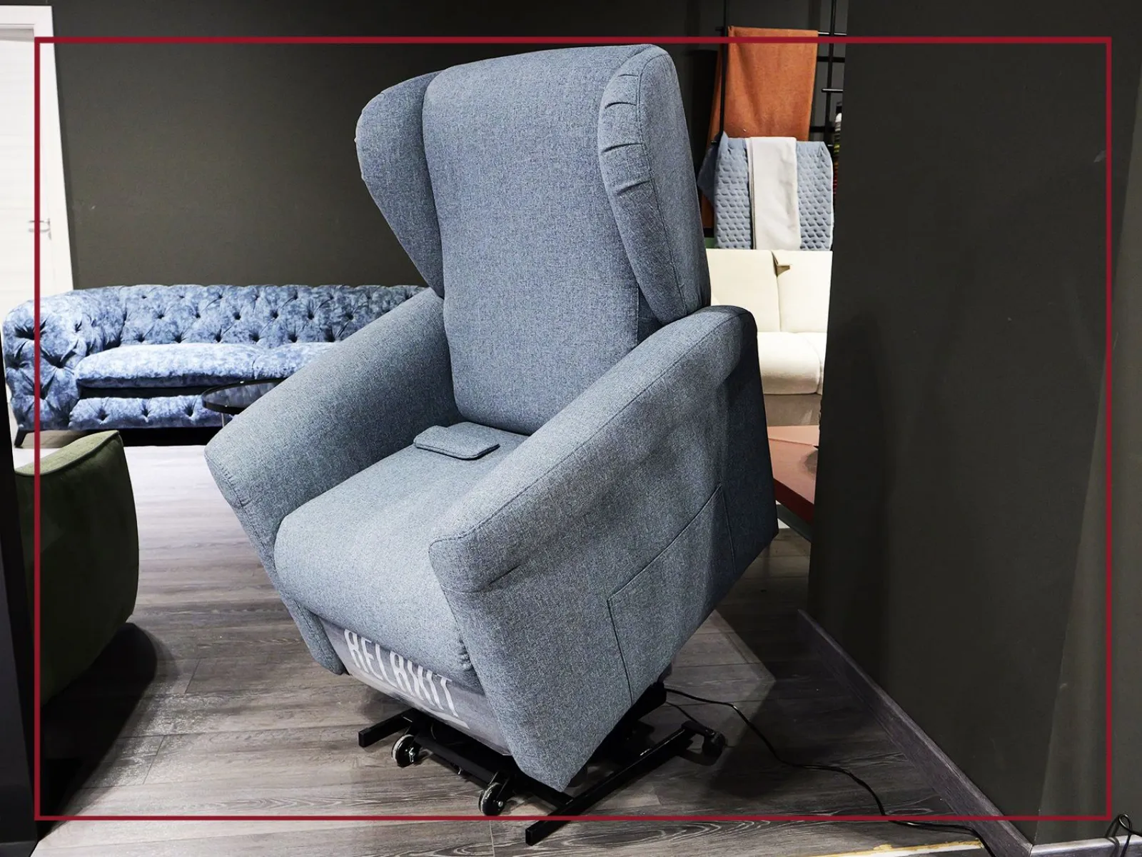 Poltrona Lift-Relax realizzata con meccanismo motorizzato. La struttura solida è assemblata con parti esterne e interne in agglomerato di legno (multistrato e massello di legno) ricoperta da poliuretano espanso indeformabile. Rivestimento in Tessuto/Ecopelle/Pelle. Non sfoderabile. Piedi in PVC.