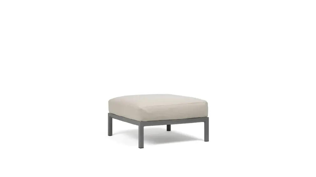 Pouf con struttura in resina rigenerata e tessuti ad alta componente riciclata. Acquistabile singolarmente o progettabile come elemento compositivo del divano modulare MAXIMO