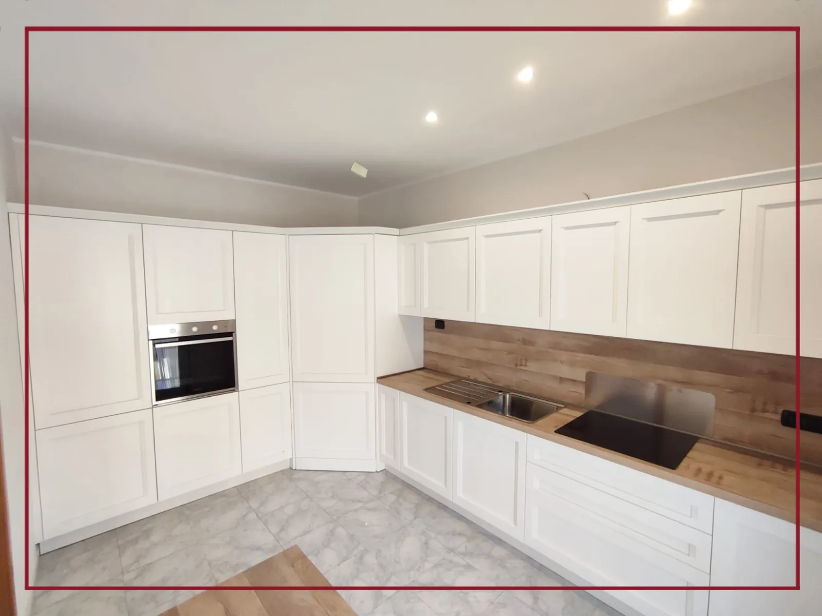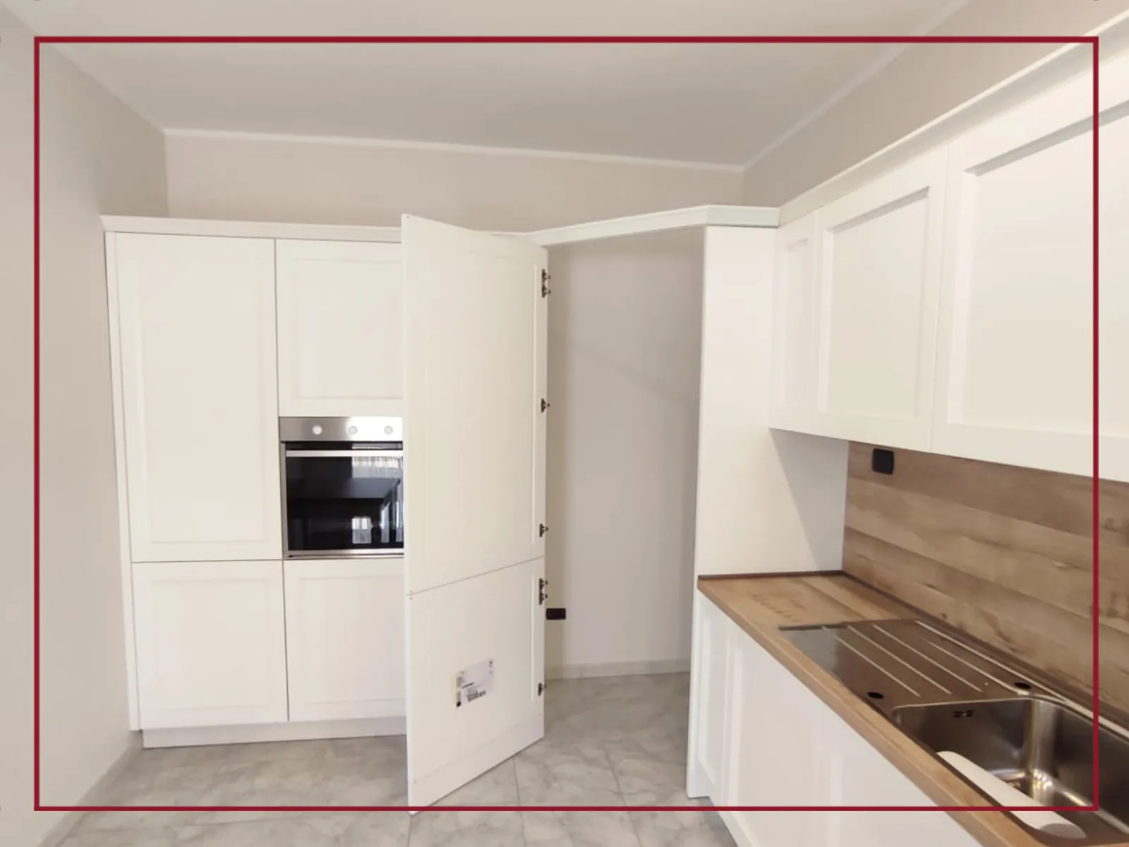 Nella cucina, inoltre, è stata realizzata una finta anta che porta in una piccola dispenza.