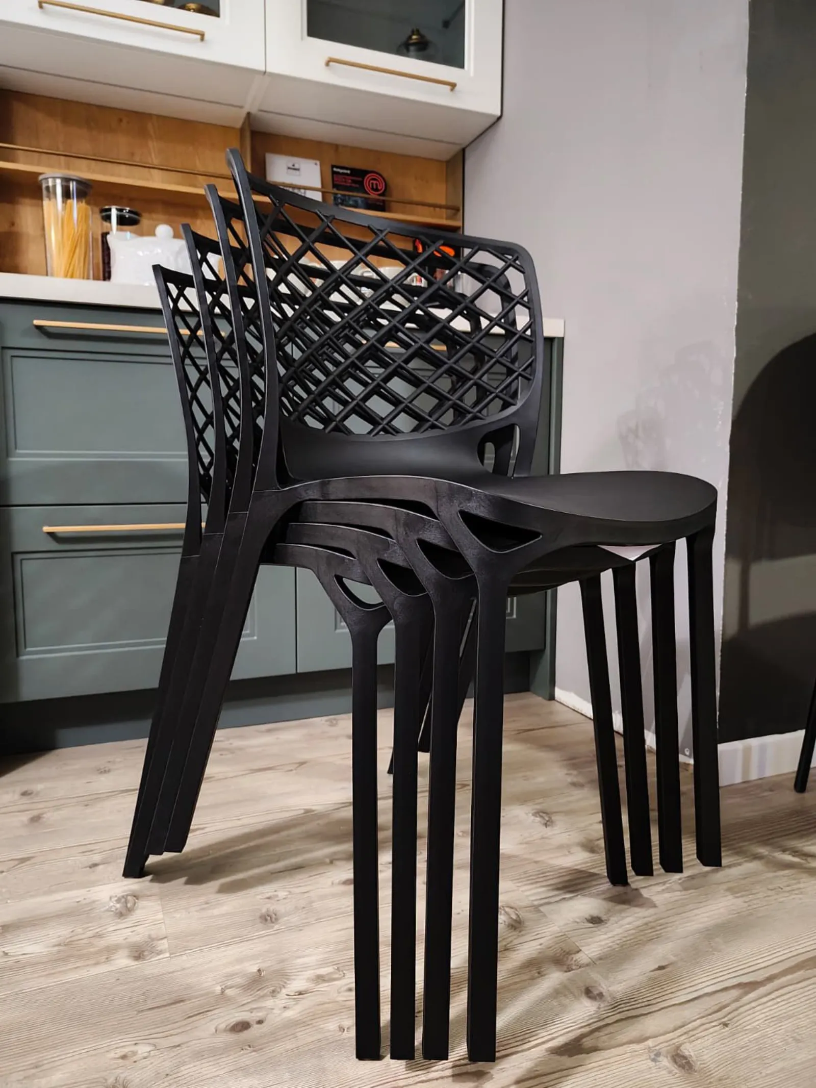 La possibilità di impilarla fino a sei unità la rende pratica anche in contesti dinamici o in ambienti contract, dove la gestione dello spazio è fondamentale.