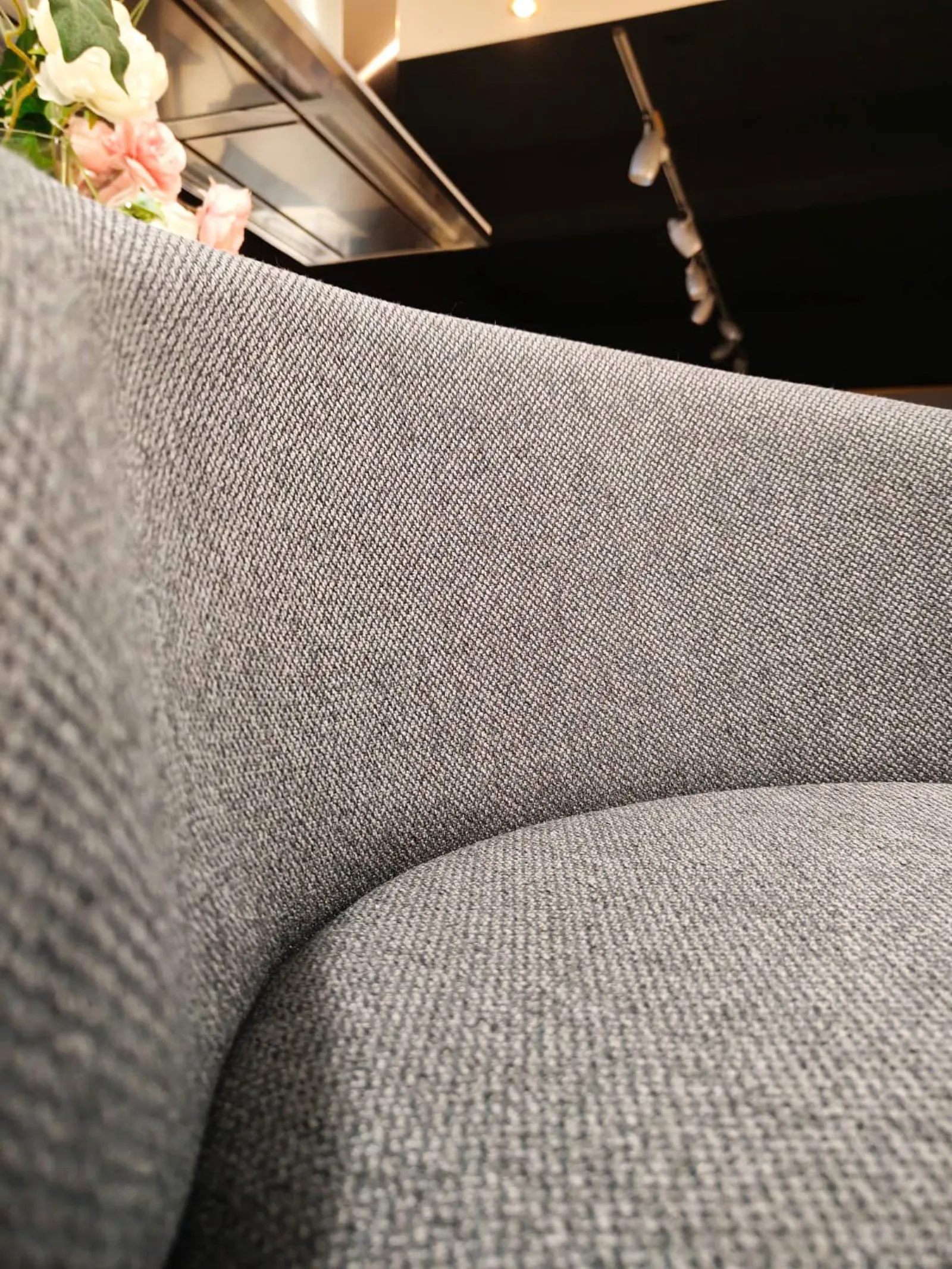 Il design è definito da un raffinato contrasto materico: la base slanciata in metallo, con le sue gambe tubolari sottili, conferisce una piacevole sensazione di leggerezza visiva e slancio verticale, mentre la scocca generosamente imbottita garantisce una morbidezza impeccabile.