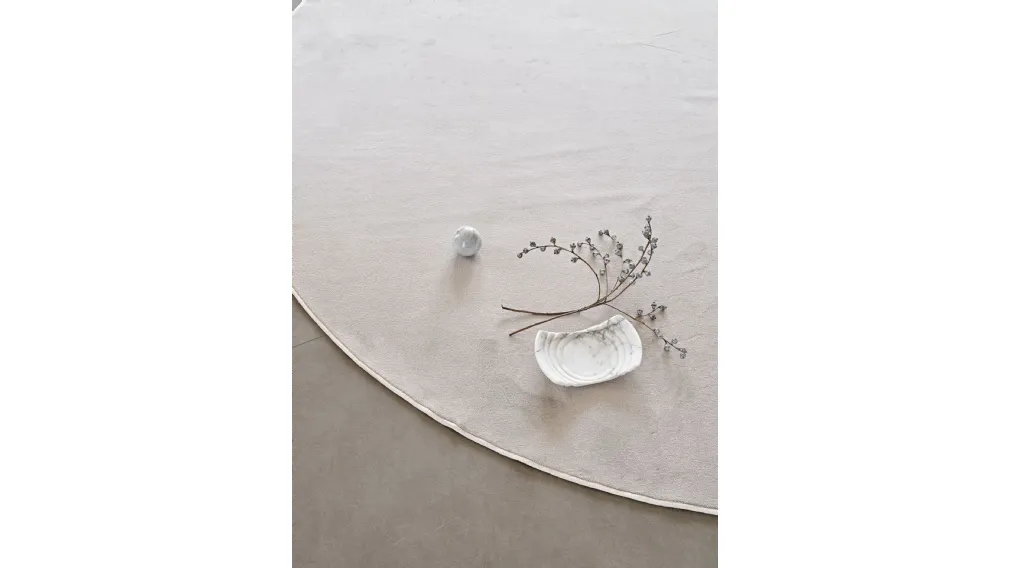 Tappeto in velluto dall'aspetto semilucido ed effetto soft touch nei colori tortora (17), white (18) o salvia (26).