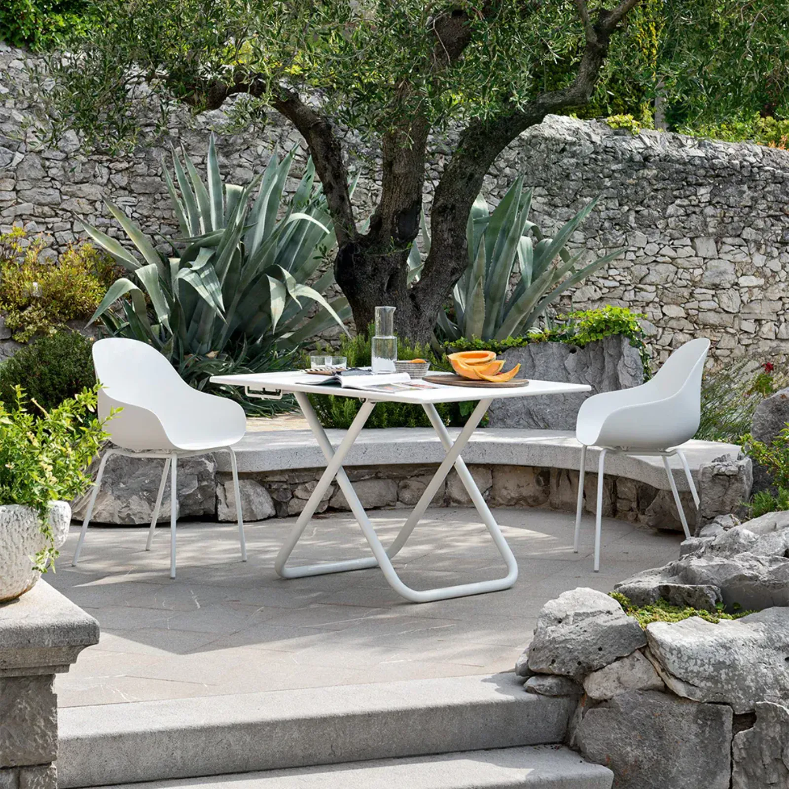 L’espressione della creatività e della adattabilità della collezione Easy è espressa da questo tavolo regolabile in altezza, dalla struttura in tubo metallico e il piano in lamiera sagomata. Tutte le parti metalliche sono trattate e verniciate per essere idonee ad un utilizzo outdoor. Le tre posizioni di regolazione lo rendono perfetto per l’utilizzo nell'area living e in quella dining.
