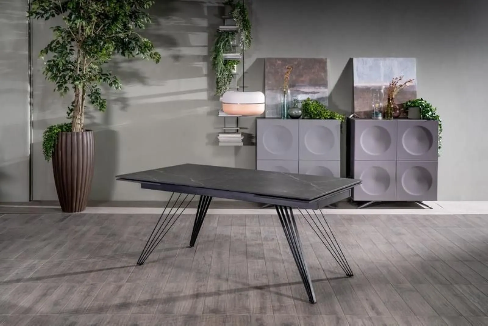 A catturare l’attenzione è la forza espressiva di questo tavolo allungabile in stile contemporaneo e industrial. Il suo design è caratterizzato dall’elegante top realizzato in ceramica che si abbina con gusto alla solida base in metallo nero. Match nelle sue tre versioni offre tante possibili combinazioni tra le finiture del piano rettangolare e le forme della base, assecondando l’espressione e il gusto personale e riflettendo lo spirito del contesto nel viene inserito. Grazie alla sua estensibilità riesce ad ospitare fino a 10 persone, e diventa l’alleato perfetto nella creazione degli spazi conviviali anche all’interno degli spazi ristretti.