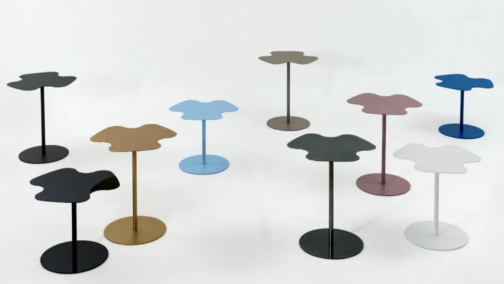 Il tavolino Flower è un pratico tavolino da salotto, in grado di arredare con stile e colore la tua casa. Il tavolino, con piano sagomato e struttura in acciaio laccato, è presente in diverse finiture e disponibile in due diverse altezze.