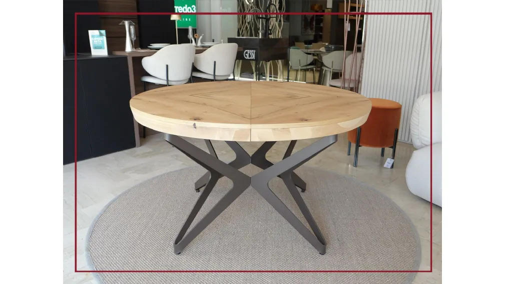 Il tavolo allungabile Big Round rappresenta l’evoluzione e l’innovazione del meccanismo del tavolo rotondo. Il meccanismo di apertura brevettato è composto da una perfetta sovrapposizione di incastri solidamente trattenuti tra loro. Il sofisticato disegno delle gambe conferisce al prodotto resistenza e personalità. Un’attenzione particolare dedicata alla finitura rovere vecchio naturale esaltata dall’intarsio centrale che si mostra solo a tavolo completamente aperto.