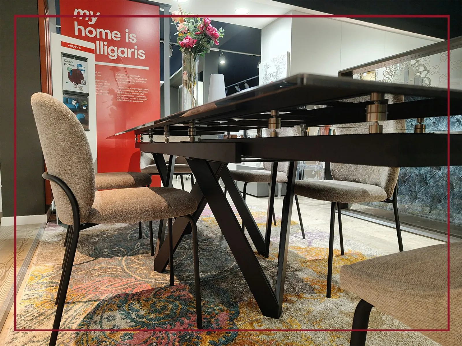 Il Cartesio non è solo un tavolo, ma un vero protagonista dell’ambiente, capace di trasformare la sala da pranzo in uno spazio contemporaneo e sofisticato.