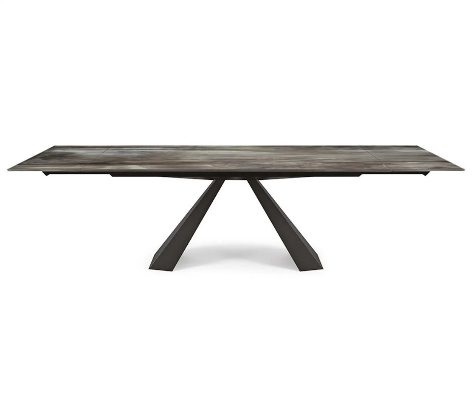 Eliot Crystalart Drive di Cattelan Italia è un tavolo allungabile con piano in vetro extrachiaro bisellato con stampa artistica decorativa in due diversi colori e basamento realizzato in acciaio laccato goffrato. Disponibile in diverse dimensioni.