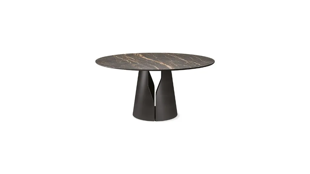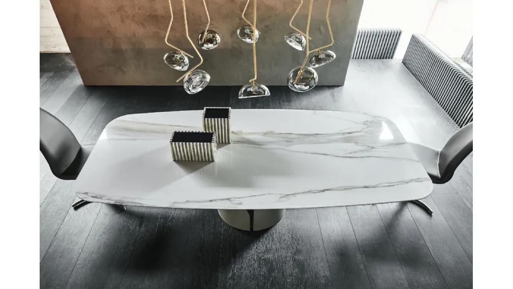 Il tavolo Giano Keramik di Cattelan Italia dal desgin di grande impatto estetico, realizzato con una base centrale conica, formata da due blocchi sagomati accoppiati.