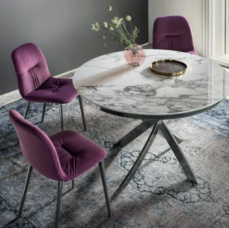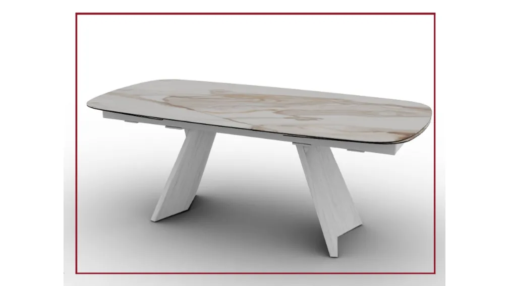 ICARO è un tavolo allungabile con basamento in legno impiallacciato e piano in ceramica.