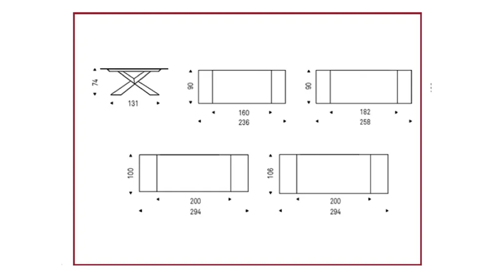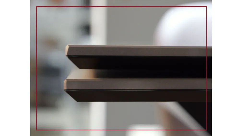 Tavolo allungabile con base in acciaio verniciato goffrato titanio (GFM11), bronzo (GFM18), graphite (GFM69) o nero (GFM73), Brushed Bronze o Brushed Grey. Piano e prolunghe in ceramica Marmi nei colori Alabastro (KM02), Supreme (KM03), Golden Calacatta opaco (KM05), Golden Calacatta lucido (KM06), Portoro opaco (KM07), Portoro lucido (KM08), Sahara Noir lucido (KM09), Makalu (KM11), Breccia (KM12), Arenal (KM13), Corcovado (KM14), Kaindy (KM16), Borghini Calacatta opaco (KM18), Borghini Calacatta lucido (KM19), Colosseo (KM21), Andromeda (KM22), Invisible opaco (KM24) o Luxor (KS23). Variazioni cromatiche e di spazzolatura della finitura Brushed sono caratteristiche della lavorazione artigianale e non sono da considerarsi difetti.